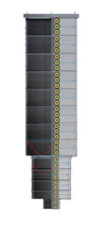 • Ogni “blocco” del sistema di array di linee subcompatte al-4 include otto elementi acustici al-4 e un singolo V4 Systems Engine