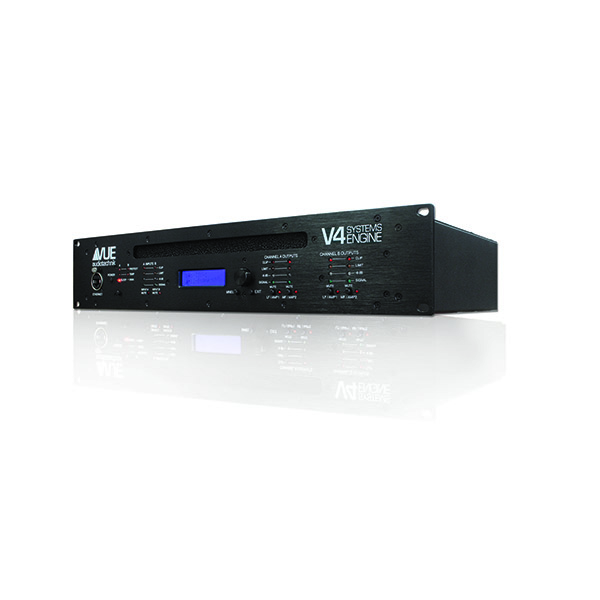 Il compatto V4 Systems Engine ha una configurazione 2-in / 4-out che fornisce quattro canali di amplificazione sufficienti per l’utilizzo fino ad otto elementi al-4.