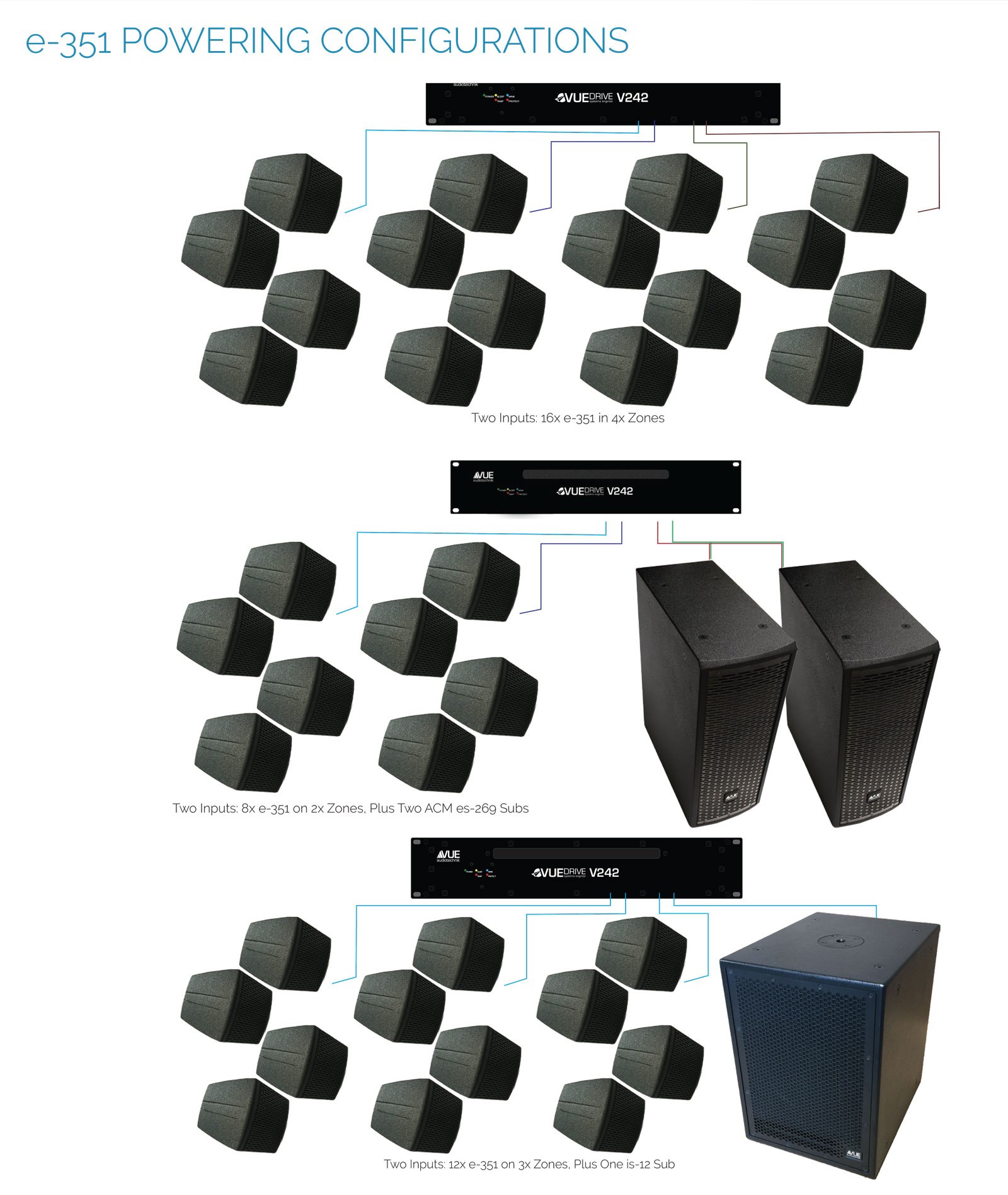 - Sistema passivo appositamente progettato per l’utilizzo con VUEDrive V242 Systems Engine per fornire un nuovo livello di accuratezza e potenza sonora